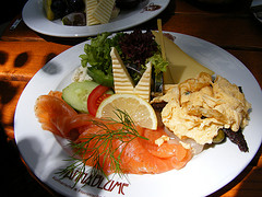 Berlin brunches are on Sunday are cheap, lazily paced, and often are an all-you-can-eat buffet. My two favorite buffet brunches in Berlin are at Bellaluna (Kollwitzstraße 66, U-Bahn Senefelderplatz) in Prenzlauer Berg and Café do Brasil (Mehringdamm 72, U-Bahn Mehringdamm) in Kreuzberg. At both you can eat yourself stupid on delicious things for less than 10 euro (at Café do Brasil, this includes all the coffee you can drink). And don’t you dare think that this is some kind of Country Buffet operation. We’re talking beautiful spreads of pastries, fruit, cheese, charcuterie, and smoked fish. At Belluna—which also makes killer pizza the rest of the week—you can also expect to see a variety of pasta dishes. One day there was a cold seafood salad of calamari, shrimp, clams, and mussels in pesto. I almost died. If you are sick to death of European food, Café do Brasil adds amazing Brazilian-style meats to the standard mix. The best advice I can give you for any delicious Berlin brunch locale is to arrive early and to be prepared to wait. This city takes brunch seriously.