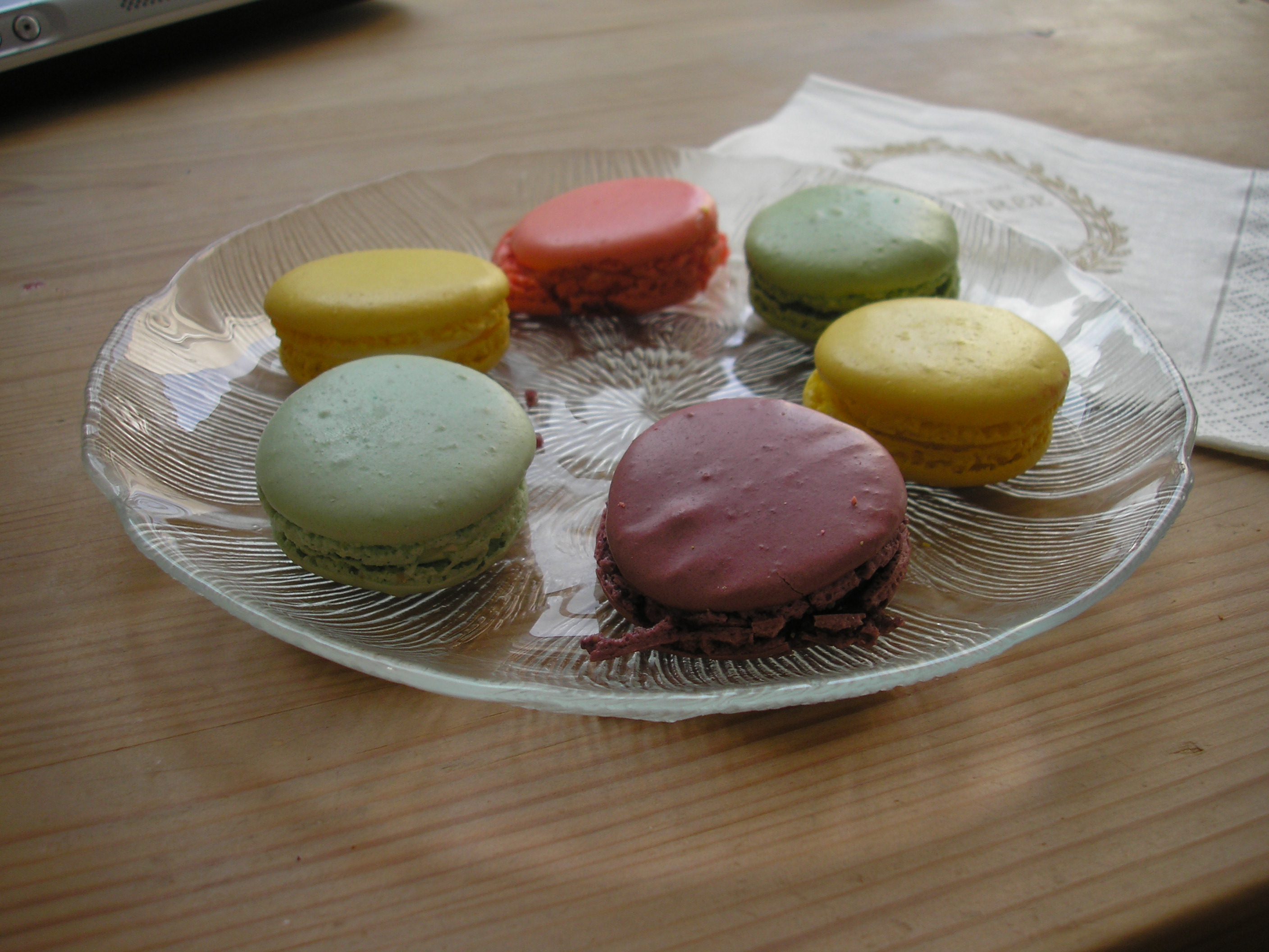 Macarons from Ladurée (clockwise that’s rose, pistachio, lemon, blackberry violet, lily of the valley (!), and lemon).