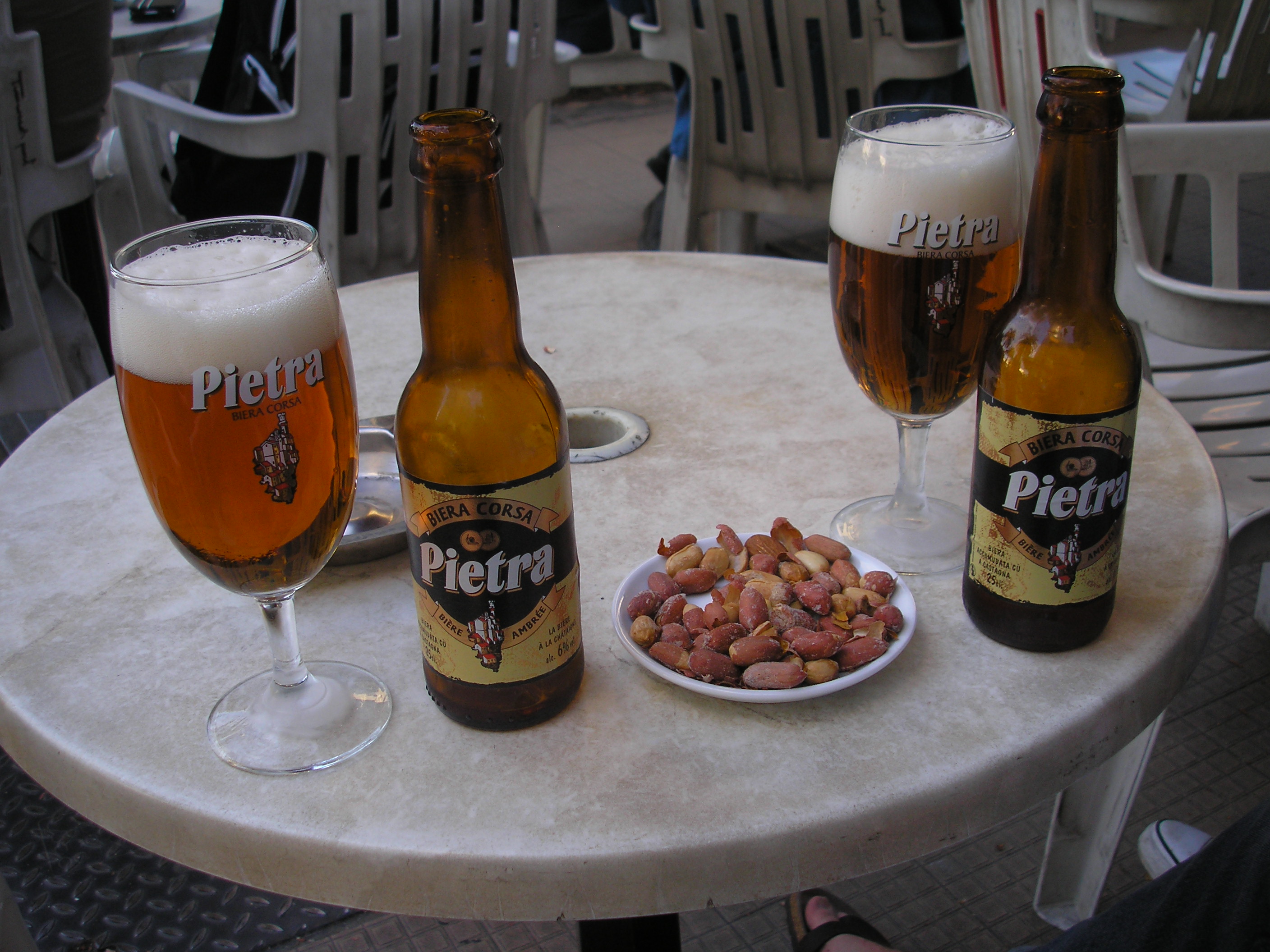 Pietra is a chestnut-tinged, medium brown ale.  It’s not just drinkable in the “Oh, hey, we happen to be in this place and this is their local beer, isn’t that fun?!” kind of way.  It’s drinkable in an “Oh man, this is really good!  Do they import this outside of Corsica?” kind of way.  I’ve since seen it in Paris, so you Frenchies can get your fix. I don’t know if they import it to the States, but you ‘mericans should really look for it with at your local booze megastore (god, I miss those places). Pair it with some dry salami and some olives and you’ve got yourself one hell of a way to while away the early evening.