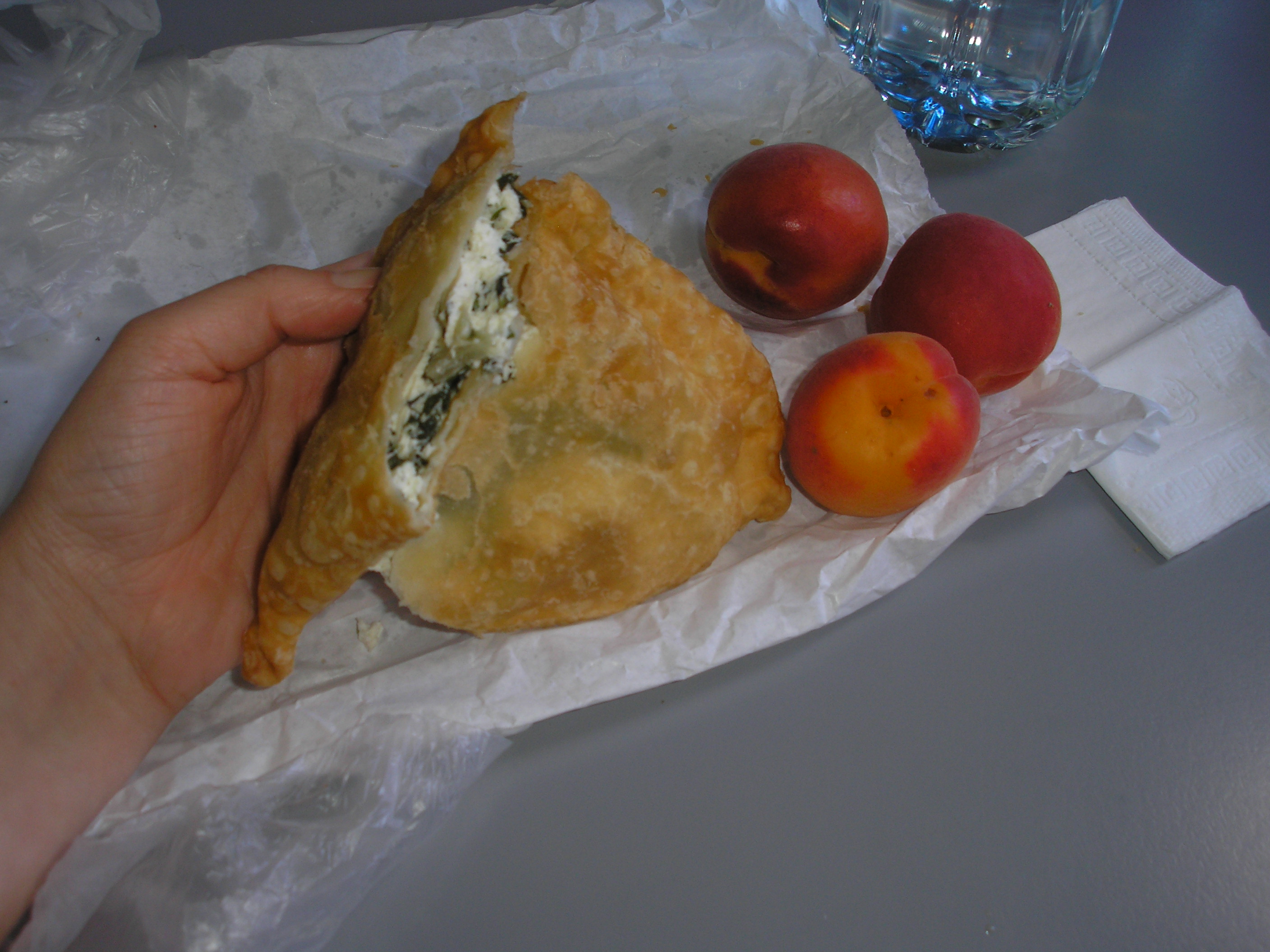 Some of our favorite lunches while we were hiking and traveling in Corsica consisted of bastelle filled with Brocciu, spinach, and wild mint.  Think of this as my Ur-Hot Pocket: