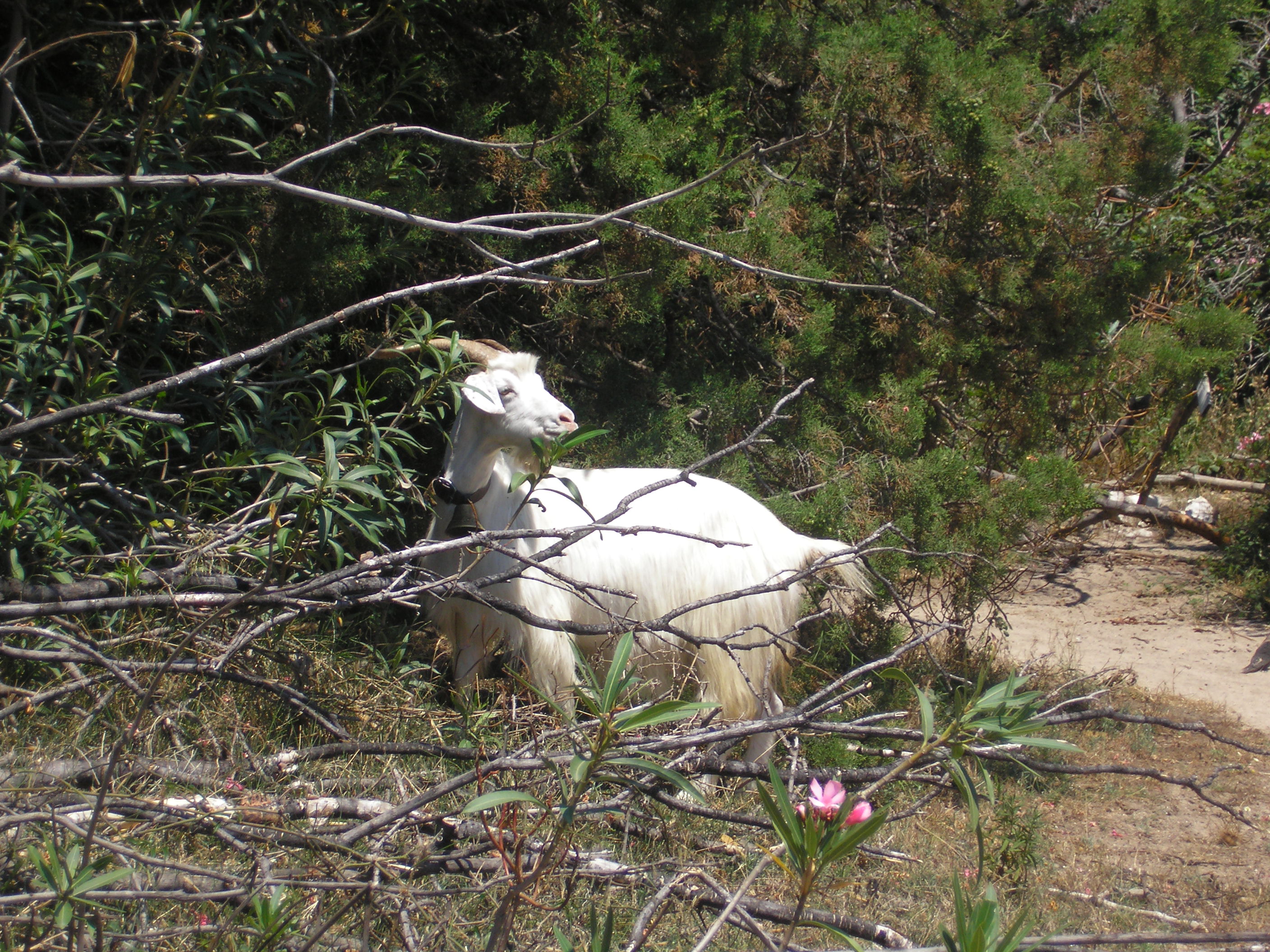 Well, the “Australian” was half right – the hike was killer. I mean, we’re talking scrambling over rocky precipices, uphill all the way, poorly marked, thrashing through the underbrush, just plain difficult. And I’m not a total wimp when it comes to hiking, either! But it was a lovely bonding moment for B and I, however, as we helped each other (okay, mainly it was him helping me) down difficult planes of rock and through tight passageways carved out of the cliffs. And, let me just say for the internets at large: two hours my ass. This is a solid three to three and a half hour hike. I say this because both Corsicans and Sardinians seem to lowball the tourists on this kind of estimate. I’d add an hour to whatever you are told if you are hiking on these islands. Moreover, we found the supposedly “popular” hikes are entirely deserted; so don’t expect to encounter anyone on your trip. We didn’t meet a single person on our hike to Cala di Luna. I entertained the worry at one point that we were just bushwhacking into the Sardinian wilderness to be eaten alive by wild boars.