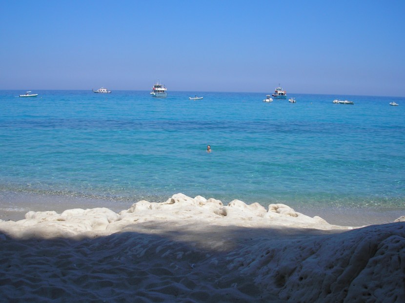 The beach at Cala di Luna is one of the most amazing things I’ve ever seen. On the south end, a white sand beach runs between a placid lake and the sparkling turquoise waters of the Mediterranean. As you move north, the beach is under these incredible cliffs that are carved out of the side of the coastline. This means that you can sit in the shade, a revelatory experience for Little Miss Sunburn over here. As you continue on, the coastline erupts in a series of amazing caves and grottos that go deep under the earth.
