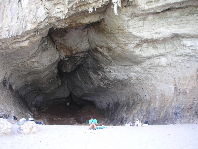 I gleefully swam until waterlogged and B explored the caves with great enthusiasm until he accidentally happened upon what must be the makeshift bathroom facility for the beach, barefoot. Oops. After a thorough wash-down, we then shared one of the best lunches of our trip from our supermarket cache: