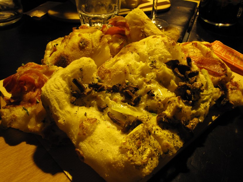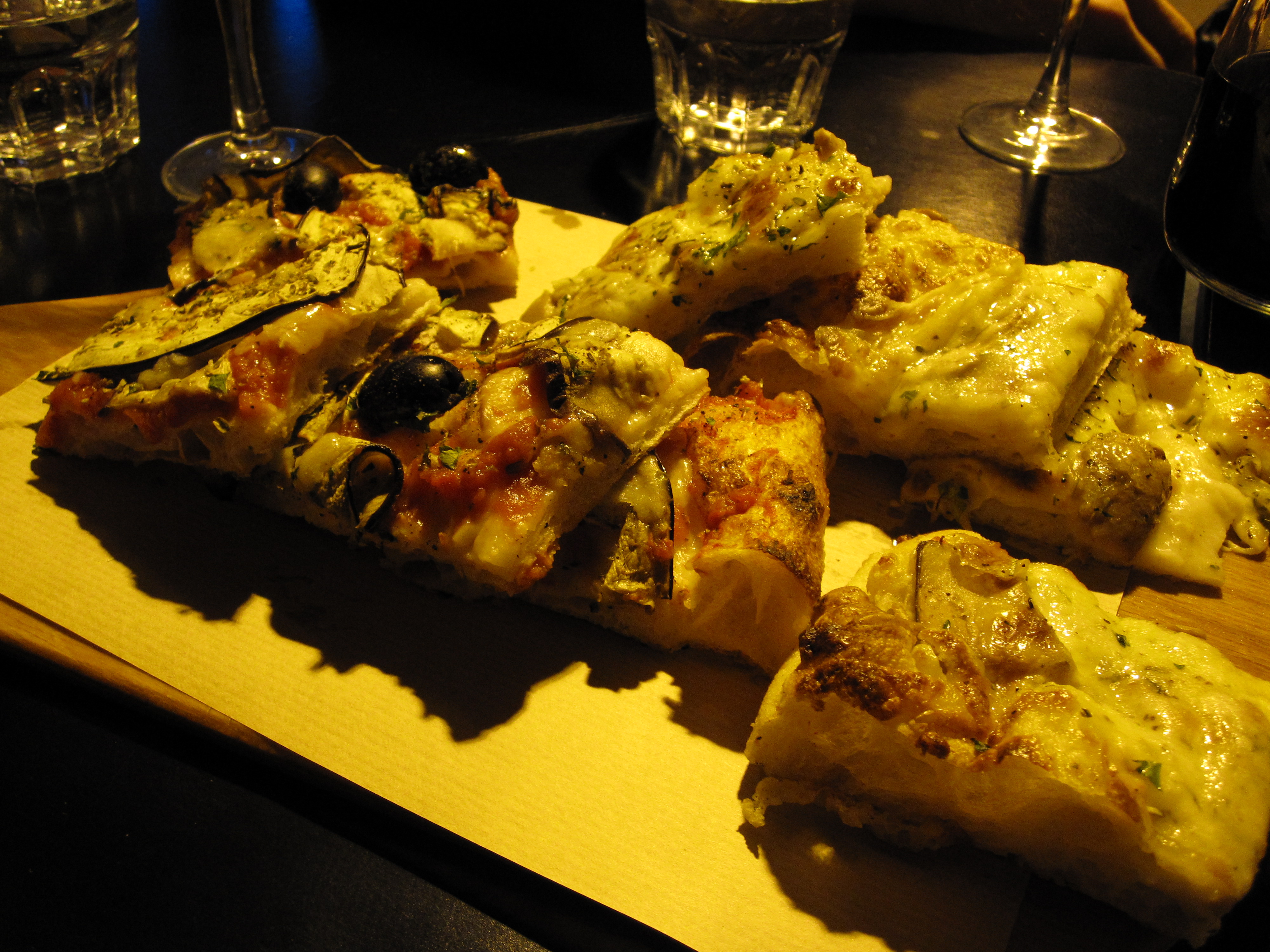 Woah, ho ho, was I wrong. It’s fantastic. Instead of ordering of a menu, you go to the counter and pick from pizzas that are available, which are cut into squares and priced by weight.  I’ll admit that part of my admiration for this system is that the pizza (in look and texture alone) vaguely resembles the Little Caesar’s Sicilian-style pizza of my childhood. Oh, how far this little foodie has come! I say “in look and texture alone” because the toppings at Al Taglio are slightly more chic than those of my dearly departed rural Colorado Little Caesars (Pizza Pizza!).  Rather than make any decision, we simply ordered an assortment of different pizzas. And then we ordered some more. And some more after that. We, uh, somehow managed to eat 155 euros worth of pizza and red wine.  I guess there were six of us, but still, it’s kind of ridiculous how much of this pizza we managed to eat.