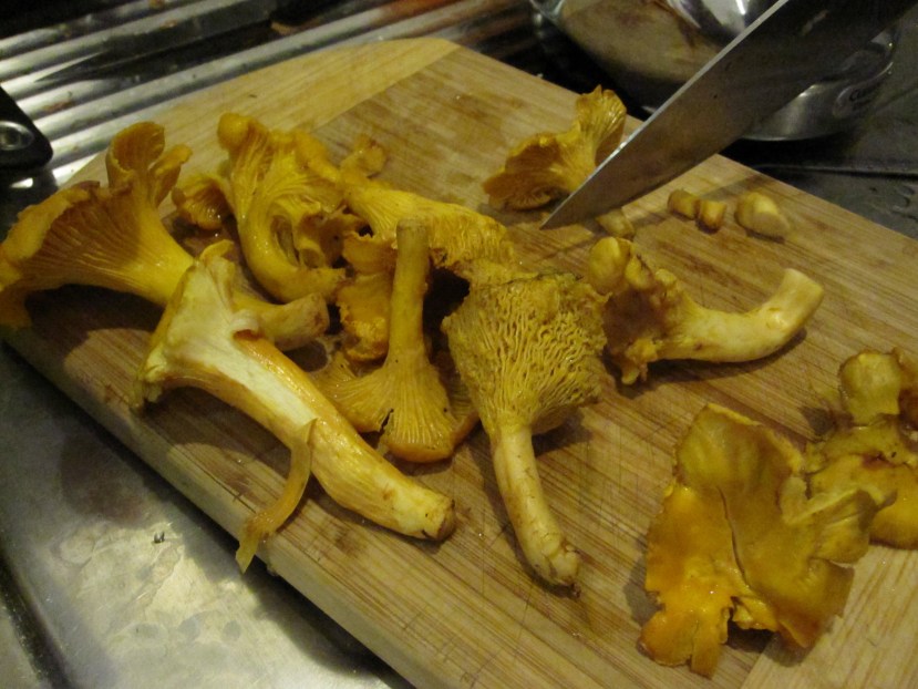 Set about one-third of your mushrooms aside (we set aside the otherworldly chanterelles).  Sauté the remaining two-thirds along with the leeks in butter until browned.  You will have to do this in batches, as it is important to not crowd your mushrooms as they cook (thanks Julia Child!).