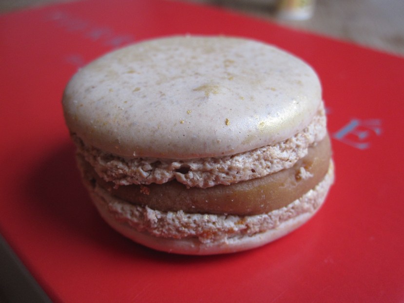 The verdict? Well, they aren’t like anything you’ve ever eaten before. There is a strange harmony between the fatty richness of the liver and the sweetness of chocolate. But, to me, the sweetness of the macaron somehow accentuated the meaty quality of the foie too much. It was really overpowering to me. Sometimes macarons are too rich for my palate, and these were the worst offenders yet. But B and our new friend L really loved them, so who am I to judge? Should you want to drop the bones, I’d definitely encourage you to try them next December. I’ll be sticking with my classic lemon and rose. Unless a white truffle or green tea with red bean makes it into my life again.