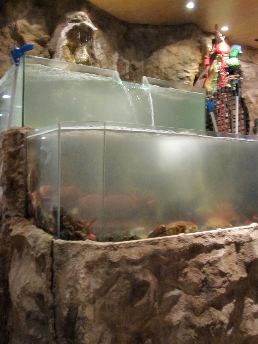 La Chine Masséna is pretty great if you want to go somewhere that feels nothing like a stereotypical Parisian restaurant. It’s huge, seating over eight hundred people in a dining room with an enormous, neon-lit dance floor, gaudy red lanterns hanging from the ceiling, and more flat-screen televisions than at your local Best Buy. Along one side of the dining room are a dozen giant fishtanks, holding everything from lobsters, crabs, and sea snails to sole and enormous, beady-eyed carp. We were seated directly next to the tanks, which meant that every time someone ordered fresh seafood, we would get to watch the waiters come and fish out dinner. I got splashed several times in the process, which was half-awesome and half-grody. The tanks don’t smell excellent, to be honest, so if you are sensitive towards that kind of thing you might want to request a table on the other side of the room. I was happy to watch the lobsters swim around and gleefully heckled the waiters when the slippery sole evaded their nets. But B, who was still recovering from the übervirus, confessed later that the whole thing made him totally nauseous. So, caveat emptor.