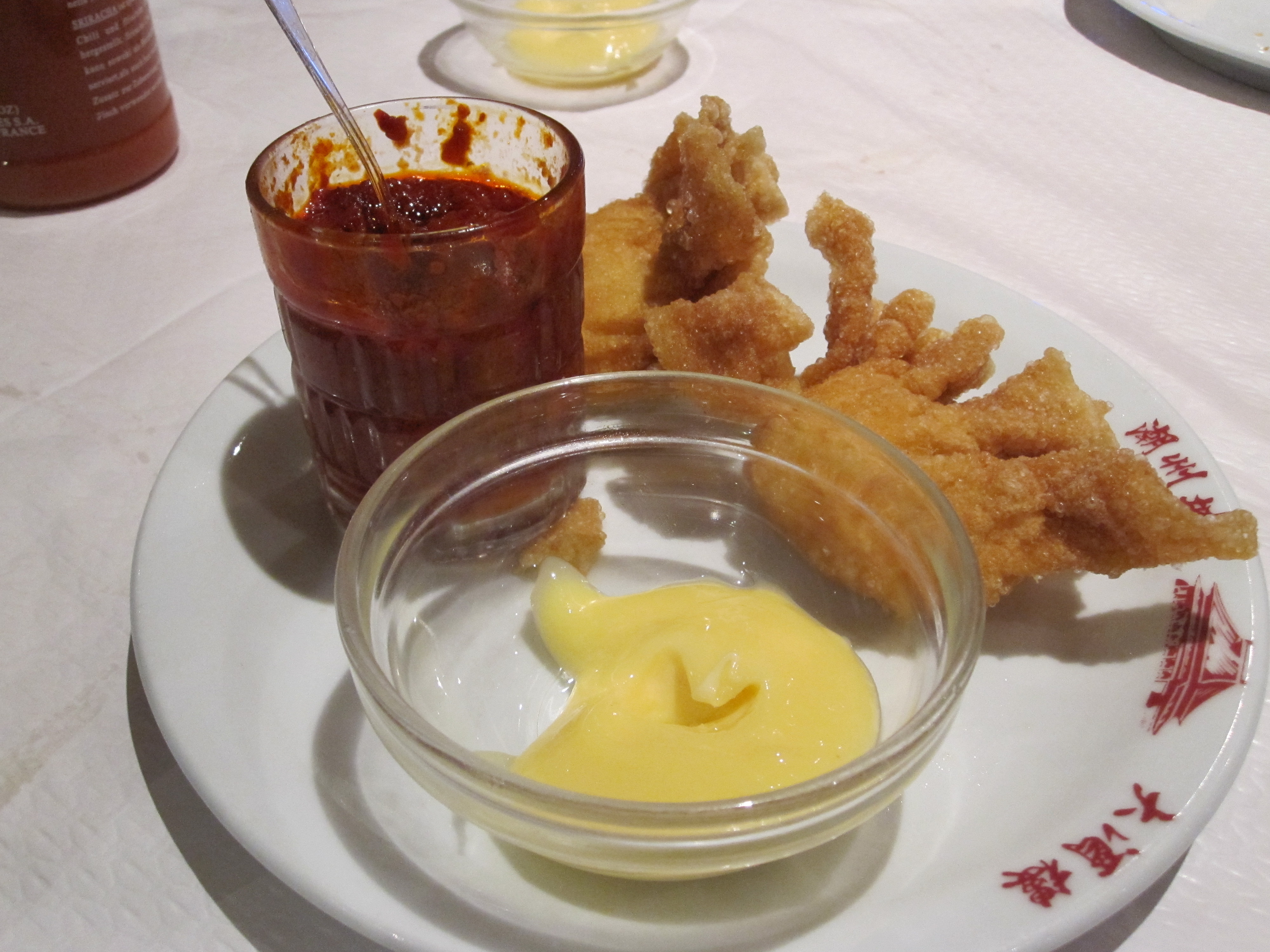 We ordered a pretty standard array of dim sum at La Chine Masséna, including pork and shrimp dumplings, shrimp ravioli, crab and bamboo shoot ravioli, mushroom dumplings, chicken feet in spicy black bean sauce, pork spare ribs, deep-fried spiny lobster croquettes, and of course my beloved pork buns. While the restaurant has an extensive wine and Chinese liquor list, we stuck with several rounds of cold Tsing-Tao.