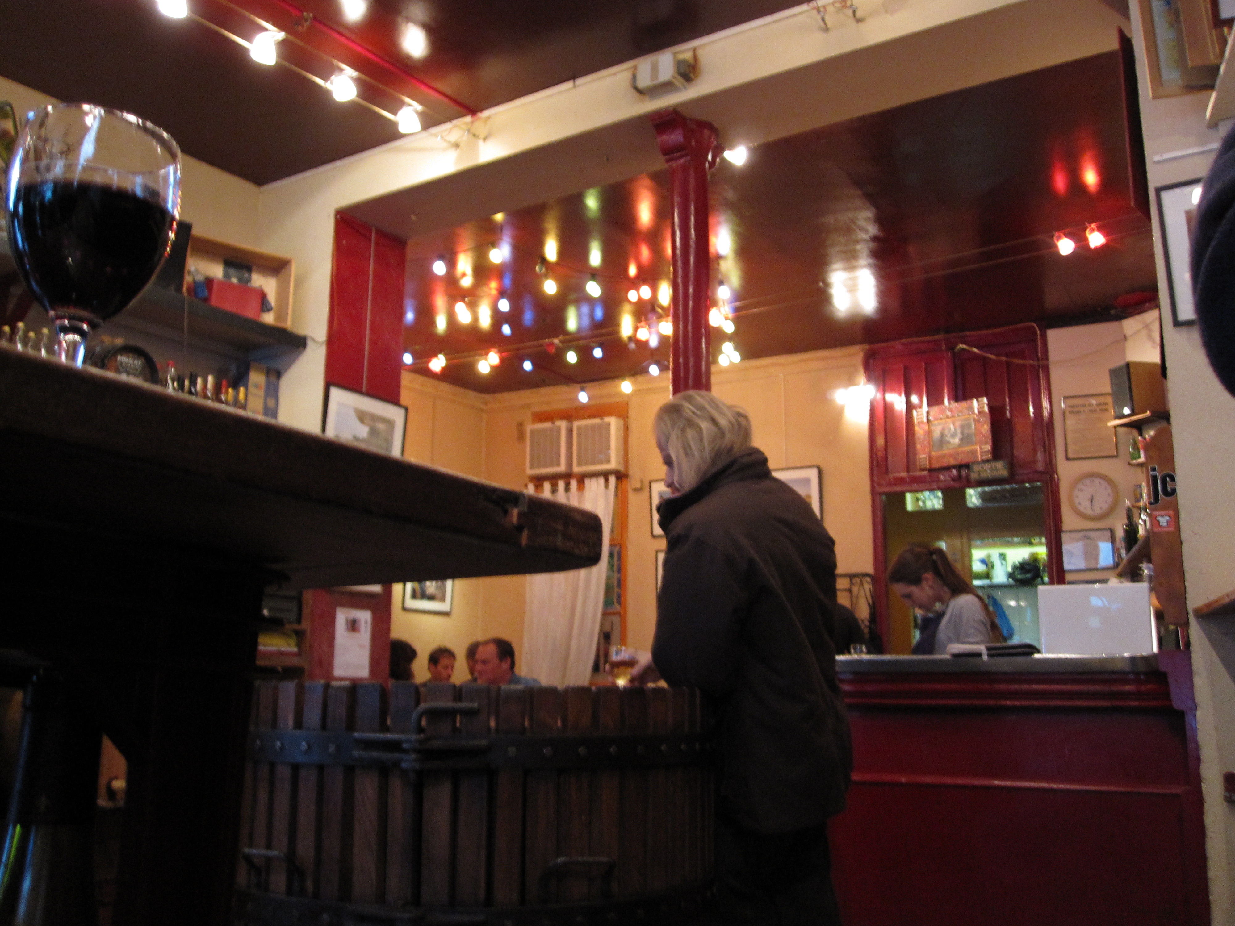 We gave our Thirsty Thursday plan a trial-spin a few weeks back with much success, with a half-dozen friends showing up to drink and chat around the enormous barrel in the center of the front room. This past Thursday was less successful, with B and I drinking alone until our table was gradually hijacked by the hoards of French workers that show up after 7 p.m. We left, disappointed that we weren’t living in our own version of Cheers and resolved to do better next week. So, Paris denizens, Le Baron Rouge next Thursday? I get done taking attendance at 4 p.m., so we’ll aim for a prompt 6 p.m. arrival time. How about it guys? The charcuterie plate is on me.