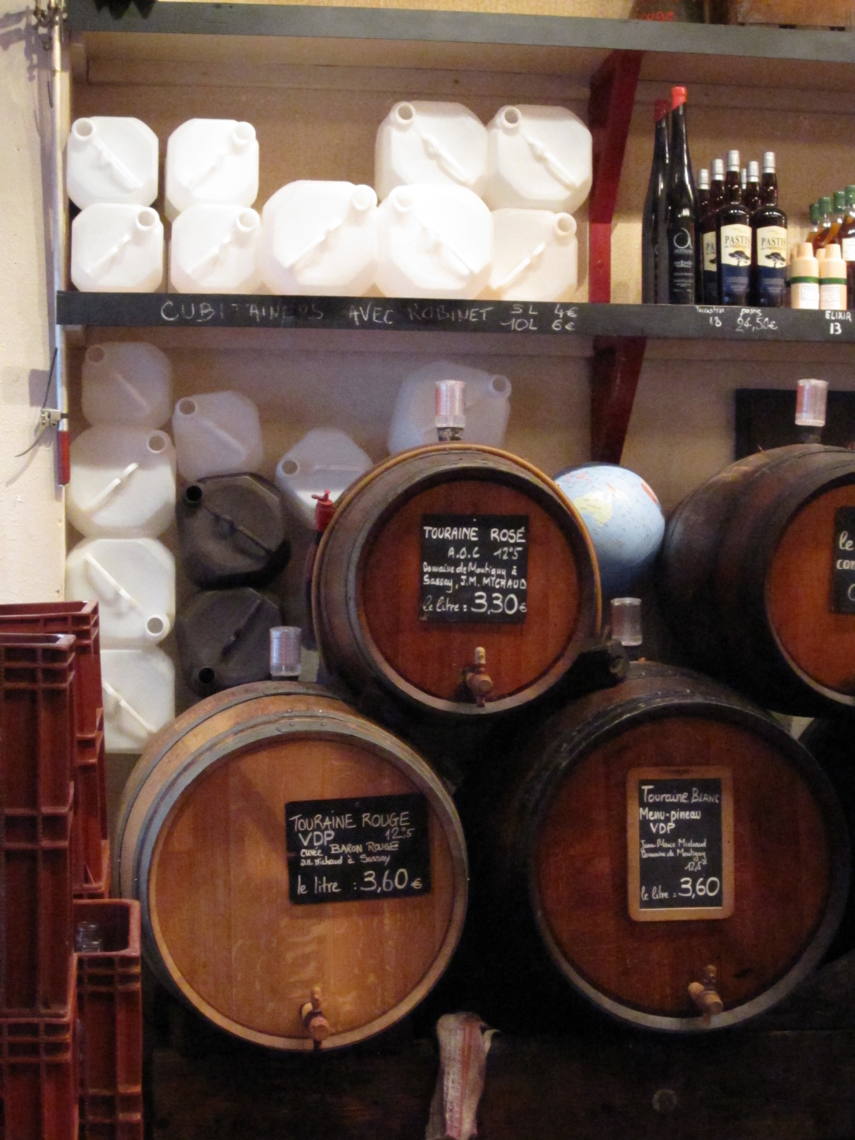 Let’s say for a moment that you’re more serious drinker, or perhaps you like boozing at home, or feel a wide-eyed sense of wonder and value when you stroll the aisles of Costo. You might want to purchase a few liters of wine from one of the big barrels that line the walls of Le Baron Rouge. You pay a one-time fee for the plastic jugs, and then return whenever you want to refill for bargain-basement prices. I like it when my bulk drinking is green. Take that, Leonardo di Caprio. Have fun cruising around in your Prius, you know, the feel-good hybrid with the hideous environmental footprint? I only take public transportation and drink my wine out of reusable plastic jugs. Now who is feeling smug?