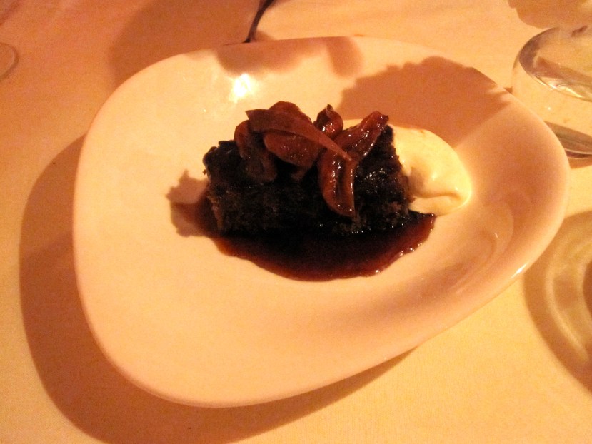 For my final evening in Cambridge, M had made reservations at the cozy local restaurant Bondir (279A Broadway, Cambridge, MA 02139, 617.661.0009, www.bondircambridge.com). Named for chef Jason Bond and presumably meant to evoke something like “to leap for joy” in French, it has a bit of a different connotation for French speakers (especially the filthy-minded ones like us). Let George Brassens explain: