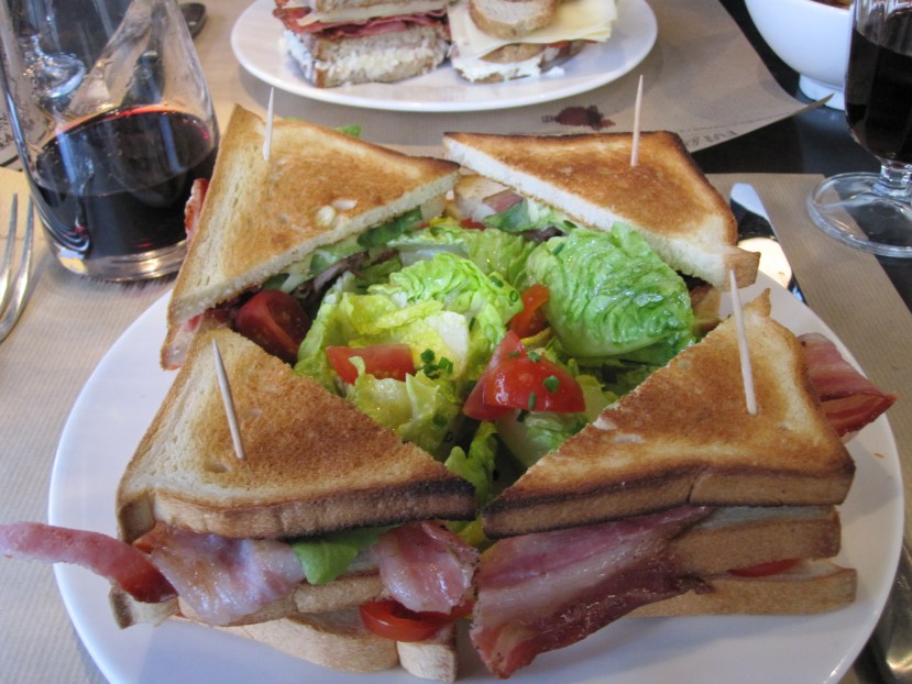 The clear winner of the spread (god, I’m so competitive!) was the perfect, oh my lord, I haven’t eaten one of these for nearly two years, thank you sweet girl, BaLT. I live for a proper BLT, people. The combination of toasted white bread spread with mayo, crisp bacon, tartly sweet tomatoes, and crunchy lettuce is my Ur-sandwich. Add avocado and I’m reduced to a quivering heap of joy. You don’t see these in Paris, and you certainly don’t see them looking like this. The dessert we ordered (fromage blanc with salted caramel and an apple crumble) wasn’t spectacular, but I didn’t care. I’ll be back for a the BaLT. Tomorrow.